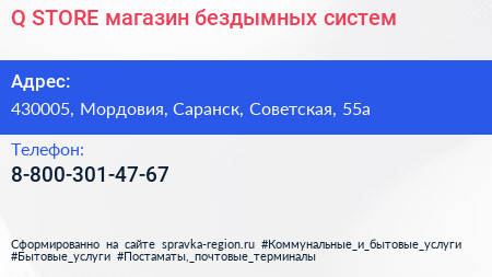 Q STORE, магазин бездымных систем по адресу 430005, Мордовия, Саранск, Советская, 55а в дальнейшем Организация, размещена в следующих категориях: