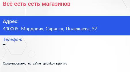 Всё есть, сеть магазинов по адресу 430005, Мордовия, Саранск, Полежаева, 57 в дальнейшем Организация, размещена в следующих категориях: