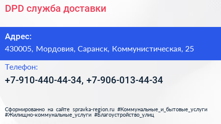 DPD, служба доставки по адресу 430005, Мордовия, Саранск, Коммунистическая, 25 в дальнейшем Организация, размещена в следующих категориях: