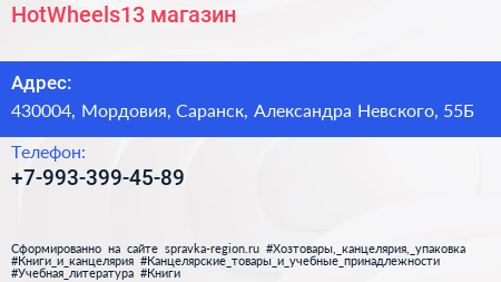 HotWheels13, магазин по адресу 430004, Мордовия, Саранск, Александра Невского, 55Б в дальнейшем Организация, размещена в следующих категориях: