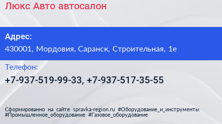 Люкс Авто, автосалон по адресу 430001, Мордовия, Саранск, Строительная, 1е в дальнейшем Организация, размещена в следующих категориях: