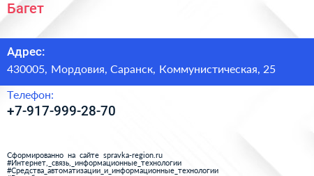 Багет по адресу 430005, Мордовия, Саранск, Коммунистическая, 25 в дальнейшем Организация, размещена в следующих категориях: