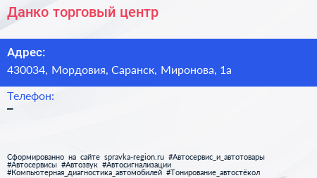 Данко, торговый центр по адресу 430034, Мордовия, Саранск, Миронова, 1а в дальнейшем Организация, размещена в следующих категориях: