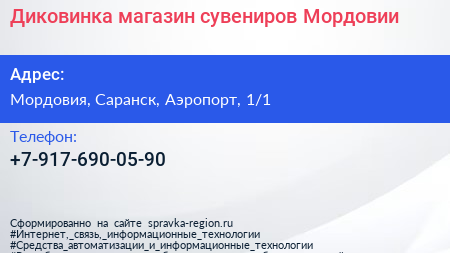 Диковинка, магазин сувениров Мордовии по адресу Мордовия, Саранск, Аэропорт, 1/1 в дальнейшем Организация, размещена в следующих категориях: