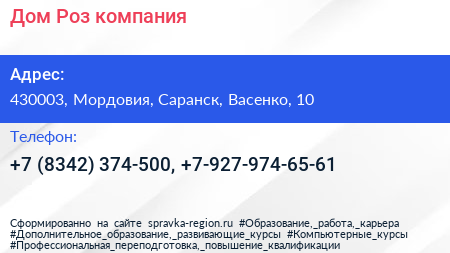 Дом Роз, компания по адресу 430003, Мордовия, Саранск, Васенко, 10 в дальнейшем Организация, размещена в следующих категориях: