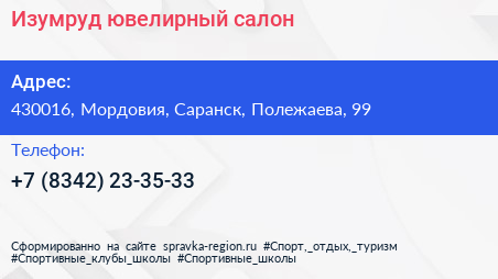 Изумруд, ювелирный салон по адресу 430016, Мордовия, Саранск, Полежаева, 99 в дальнейшем Организация, размещена в следующих категориях: