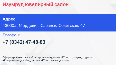 Изумруд, ювелирный салон по адресу 430005, Мордовия, Саранск, Советская, 47 в дальнейшем Организация, размещена в следующих категориях: