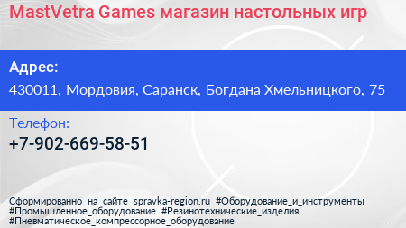 MastVetra Games, магазин настольных игр по адресу 430011, Мордовия, Саранск, Богдана Хмельницкого, 75 в дальнейшем Организация, размещена в следующих категориях: