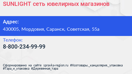 SUNLIGHT, сеть ювелирных магазинов по адресу 430005, Мордовия, Саранск, Советская, 55а в дальнейшем Организация, размещена в следующих категориях: