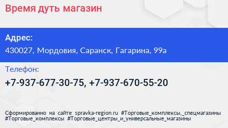 Время дуть, магазин по адресу 430027, Мордовия, Саранск, Гагарина, 99а в дальнейшем Организация, размещена в следующих категориях: