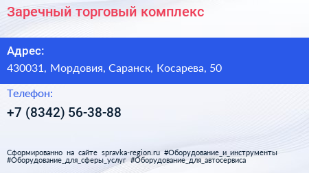 Заречный, торговый комплекс по адресу 430031, Мордовия, Саранск, Косарева, 50 в дальнейшем Организация, размещена в следующих категориях: