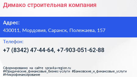 Димако, строительная компания по адресу 430011, Мордовия, Саранск, Полежаева, 157 в дальнейшем Организация, размещена в следующих категориях: