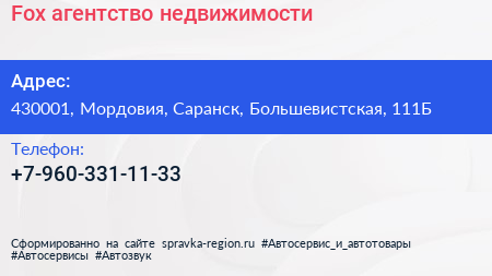 Fox, агентство недвижимости по адресу 430001, Мордовия, Саранск, Большевистская, 111Б в дальнейшем Организация, размещена в следующих категориях: