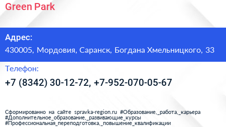 Green Park по адресу 430005, Мордовия, Саранск, Богдана Хмельницкого, 33 в дальнейшем Организация, размещена в следующих категориях: