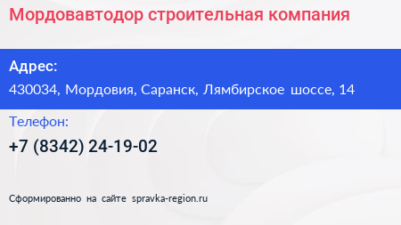Мордовавтодор, строительная компания по адресу 430034, Мордовия, Саранск, Лямбирское шоссе, 14 в дальнейшем Организация, размещена в следующих категориях: