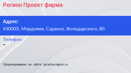 Регион-Проект, фирма по адресу 430003, Мордовия, Саранск, Володарского, 80 в дальнейшем Организация, размещена в следующих категориях: