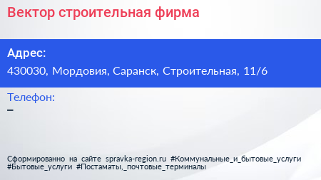 Вектор, строительная фирма по адресу 430030, Мордовия, Саранск, Строительная, 11/6 в дальнейшем Организация, размещена в следующих категориях: