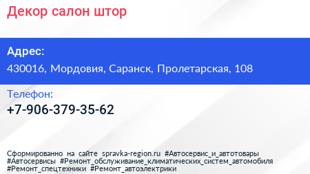 Декор, салон штор по адресу 430016, Мордовия, Саранск, Пролетарская, 108 в дальнейшем Организация, размещена в следующих категориях: