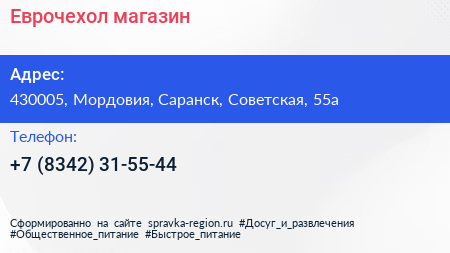 Еврочехол, магазин по адресу 430005, Мордовия, Саранск, Советская, 55а в дальнейшем Организация, размещена в следующих категориях: