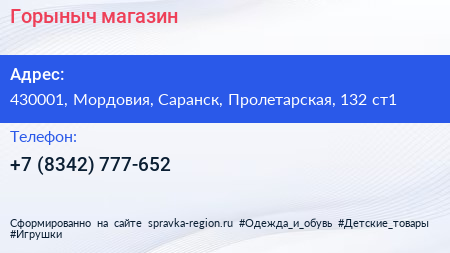 Горыныч, магазин по адресу 430001, Мордовия, Саранск, Пролетарская, 132 ст1 в дальнейшем Организация, размещена в следующих категориях: