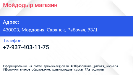 Мойдодыр, магазин по адресу 430003, Мордовия, Саранск, Рабочая, 93/1 в дальнейшем Организация, размещена в следующих категориях: