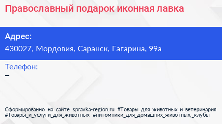 Православный подарок, иконная лавка по адресу 430027, Мордовия, Саранск, Гагарина, 99а в дальнейшем Организация, размещена в следующих категориях: