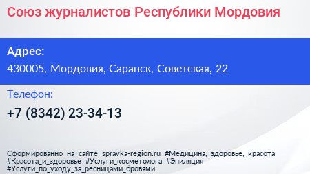Союз журналистов Республики Мордовия по адресу 430005, Мордовия, Саранск, Советская, 22 в дальнейшем Организация, размещена в следующих категориях: