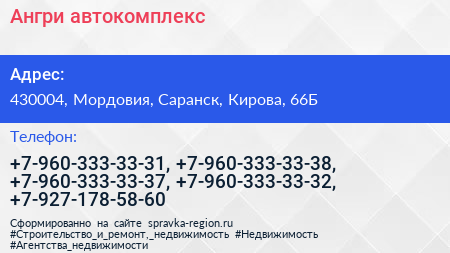 Ангри, автокомплекс по адресу 430004, Мордовия, Саранск, Кирова, 66Б в дальнейшем Организация, размещена в следующих категориях: