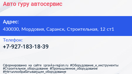 Авто-гуру, автосервис по адресу 430030, Мордовия, Саранск, Строительная, 12 ст1 в дальнейшем Организация, размещена в следующих категориях: