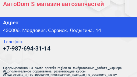АвтоDom-S, магазин автозапчастей по адресу 430006, Мордовия, Саранск, Лодыгина, 14 в дальнейшем Организация, размещена в следующих категориях: