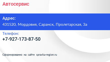 Автосервис по адресу 431520, Мордовия, Саранск, Пролетарская, 3а в дальнейшем Организация, размещена в следующих категориях: