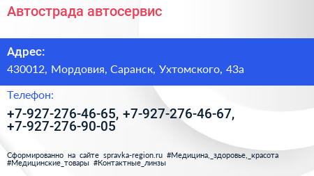 Автострада, автосервис по адресу 430012, Мордовия, Саранск, Ухтомского, 43а в дальнейшем Организация, размещена в следующих категориях: