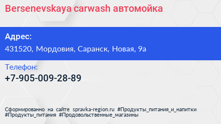 Bersenevskaya carwash, автомойка по адресу 431520, Мордовия, Саранск, Новая, 9а в дальнейшем Организация, размещена в следующих категориях: