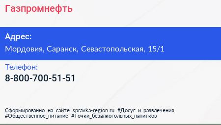Газпромнефть по адресу Мордовия, Саранск, Севастопольская, 15/1 в дальнейшем Организация, размещена в следующих категориях: