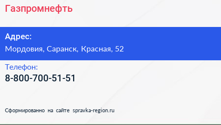 Газпромнефть по адресу Мордовия, Саранск, Красная, 52 в дальнейшем Организация, размещена в следующих категориях: