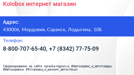 Kolobox, интернет-магазин по адресу 430006, Мордовия, Саранск, Лодыгина, 10Б в дальнейшем Организация, размещена в следующих категориях: