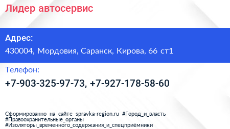 Лидер, автосервис по адресу 430004, Мордовия, Саранск, Кирова, 66 ст1 в дальнейшем Организация, размещена в следующих категориях: