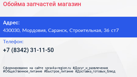Обойма запчастей, магазин по адресу 430030, Мордовия, Саранск, Строительная, 36 ст7 в дальнейшем Организация, размещена в следующих категориях: