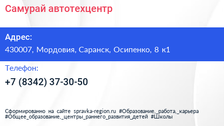 Самурай, автотехцентр по адресу 430007, Мордовия, Саранск, Осипенко, 8 к1 в дальнейшем Организация, размещена в следующих категориях: