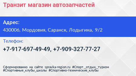 Транзит, магазин автозапчастей по адресу 430006, Мордовия, Саранск, Лодыгина, 9/2 в дальнейшем Организация, размещена в следующих категориях: