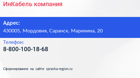 ИнКабель, компания по адресу 430005, Мордовия, Саранск, Маринина, 20 в дальнейшем Организация, размещена в следующих категориях: