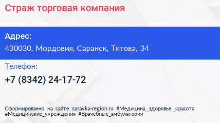 Страж, торговая компания по адресу 430030, Мордовия, Саранск, Титова, 34 в дальнейшем Организация, размещена в следующих категориях: