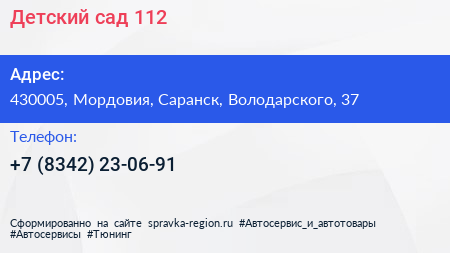 Детский сад №112 по адресу 430005, Мордовия, Саранск, Володарского, 37 в дальнейшем Организация, размещена в следующих категориях: