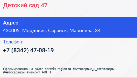 Детский сад №47 по адресу 430005, Мордовия, Саранск, Маринина, 34 в дальнейшем Организация, размещена в следующих категориях: