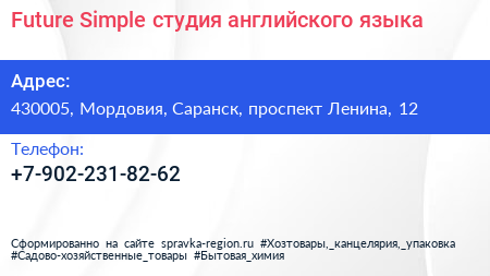 Future Simple, студия английского языка по адресу 430005, Мордовия, Саранск, проспект Ленина, 12 в дальнейшем Организация, размещена в следующих категориях:
