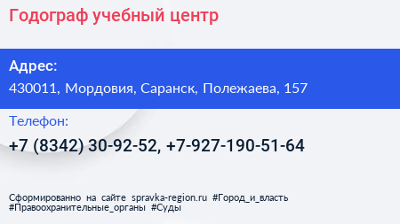 Годограф, учебный центр по адресу 430011, Мордовия, Саранск, Полежаева, 157 в дальнейшем Организация, размещена в следующих категориях: