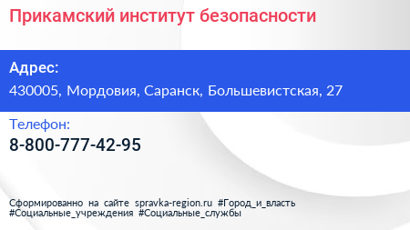 Прикамский институт безопасности по адресу 430005, Мордовия, Саранск, Большевистская, 27 в дальнейшем Организация, размещена в следующих категориях: