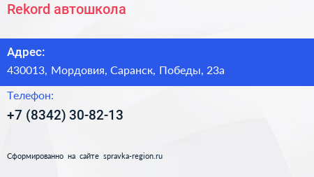 Rekord, автошкола по адресу 430013, Мордовия, Саранск, Победы, 23а в дальнейшем Организация, размещена в следующих категориях: