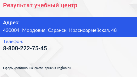 Результат, учебный центр по адресу 430004, Мордовия, Саранск, Красноармейская, 48 в дальнейшем Организация, размещена в следующих категориях: