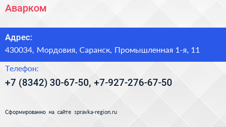 Аварком по адресу 430034, Мордовия, Саранск, Промышленная 1-я, 11 в дальнейшем Организация, размещена в следующих категориях: